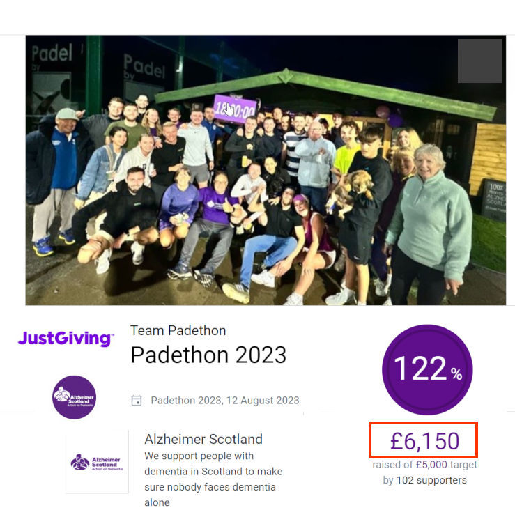 Huge congratulations and well done to all organizers, helpers and participants at the 6th annual Padethon which took place at Hatton on the 12th August. Non-stop padel for 18 hours, giving dozens of players from Edinburgh and West Lothian the chance to play padel for the first time, and all in support of Alzheimer's Scotland. The day's other activities which included a tennis 'americano' tournament and pilates classes also proved to be very popular.